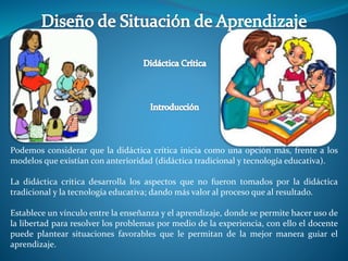 La didáctica crítica se desarrolló como una alternativa a los modelos tradicionales y de tecnología educativa, dando más valor al proceso de aprendizaje que al resultado. Establece una conexión entre la enseñanza y el aprendizaje permitiendo que los estudiantes resuelvan problemas a través de la experiencia guiada por el profesor. La instrumentación didáctica es importante para los profesores ya que les permite utilizar herramientas para preparar a los estudiantes y conocer qué conocimientos son útiles, guiando un aprend