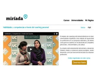 Este documento presenta la información básica sobre un curso de coaching y inteligencia emocional impartido en la Universidad de Cantabria. El curso está diseñado para proporcionar herramientas de coaching a través de ejercicios prácticos y será impartido por un equipo de enfermeras y profesoras con experiencia en ciencias sociales. El curso consta de nueve módulos semanales con material audiovisual y escrito, y cada módulo incluye un cuestionario para su evaluación.