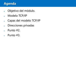 El documento habla sobre los fundamentos de las redes, incluyendo el modelo TCP/IP, sus capas, direcciones privadas, y herramientas de configuración como ifconfig. Explica que el modelo TCP/IP tiene cuatro capas y describe cada una. También detalla las clases de direcciones privadas (Clase A, B y C) y cómo se usan máscaras de subred para distinguir la red y la dirección del host.