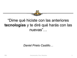 Este documento presenta información sobre la comunicación didáctica en la educación. Explica que la comunicación didáctica se fundamenta en la psicología humanística y considera al ser humano como una estructura biológica con libertad. También plantea preguntas sobre la mejor forma de transmitir conocimientos y utilizar recursos tecnológicos en la educación. Finalmente, describe características de la comunicación didáctica como su orientación funcional en los contenidos y procedimientos, y características deseables en un docente como la post