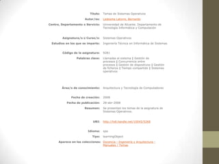 El documento presenta tres temas relacionados con sistemas operativos de código abierto. Incluye introducciones a sistemas operativos Linux, comparaciones del rendimiento de servidores web en diferentes sistemas operativos, y apuntes sobre administración avanzada de sistemas GNU/Linux.