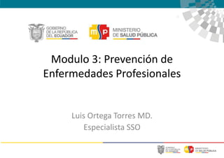 El documento define una enfermedad profesional como aquella causada directamente por el ejercicio de una profesión u oficio, y que requiere de una exposición prolongada a un ambiente o actividad nociva para desarrollarse, diferenciándose de los accidentes. Explica que para distinguir una enfermedad profesional se requiere establecer una relación entre la exposición laboral y los efectos en la salud, así como una mayor incidencia en los trabajadores que en el resto de la población. Finalmente, presenta datos de la OIT sobre