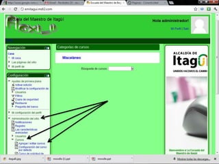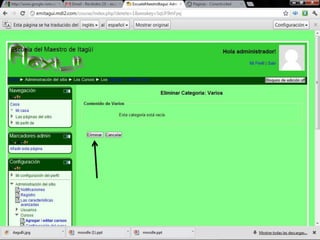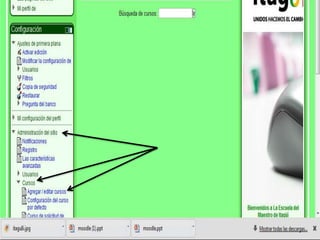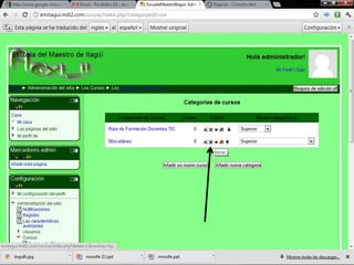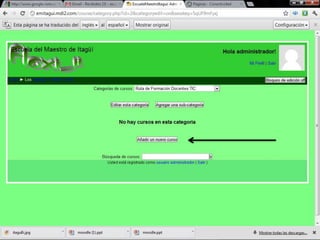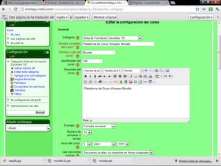 Este documento explica cómo agregar categorías y cursos a una plataforma. Enseña a completar un formulario para crear categorías como "Ruta de Formación Docentes Matemáticas" y luego agregar cursos a esas categorías completando otro formulario. También instruye al lector a crear categorías anidadas como "Bachillerato", con subcategorías por área y período, y luego agregar cursos por grado dentro de esas subcategorías.