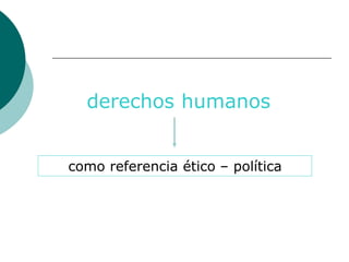 Este documento presenta una introducción al concepto de derechos humanos. Explica que los derechos humanos son inherentes a todos los seres humanos sin distinción y son universales, inalienables, indivisibles e interdependientes. También describe que los derechos humanos incluyen tanto derechos como obligaciones para los estados de respetar, proteger y cumplir los derechos humanos. Finalmente, discute que la educación es tanto un derecho humano como una herramienta para promover y exigir todos los derechos humanos.