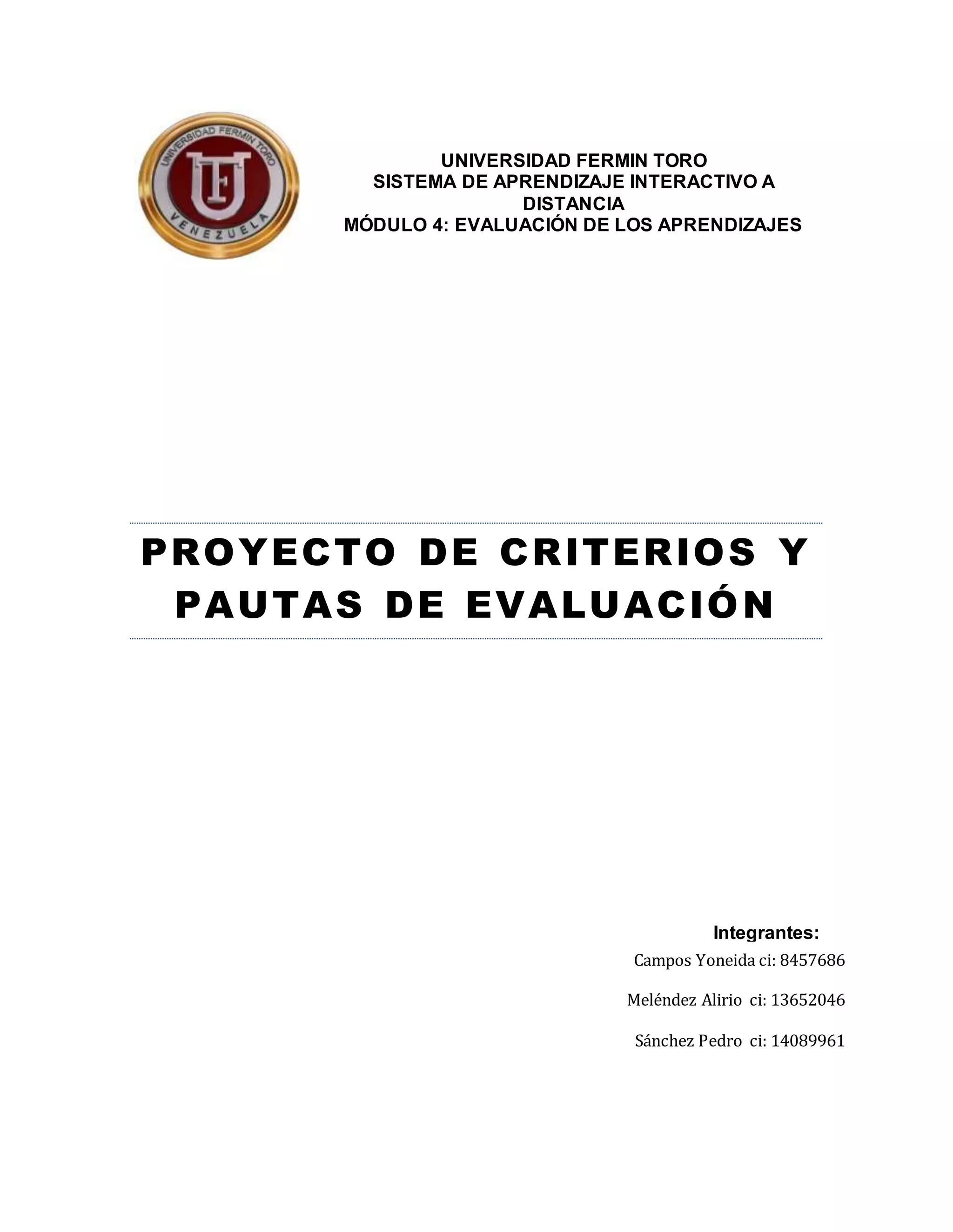 Este documento presenta el proyecto de criterios y pautas de evaluación para un curso de Metodología de la Investigación I. El curso se divide en tres unidades temáticas, cada una con objetivos específicos de aprendizaje. La evaluación incluye foros, ensayos, wikis y videos para evaluar el dominio de los contenidos. El documento también proporciona criterios detallados para cada actividad de evaluación.