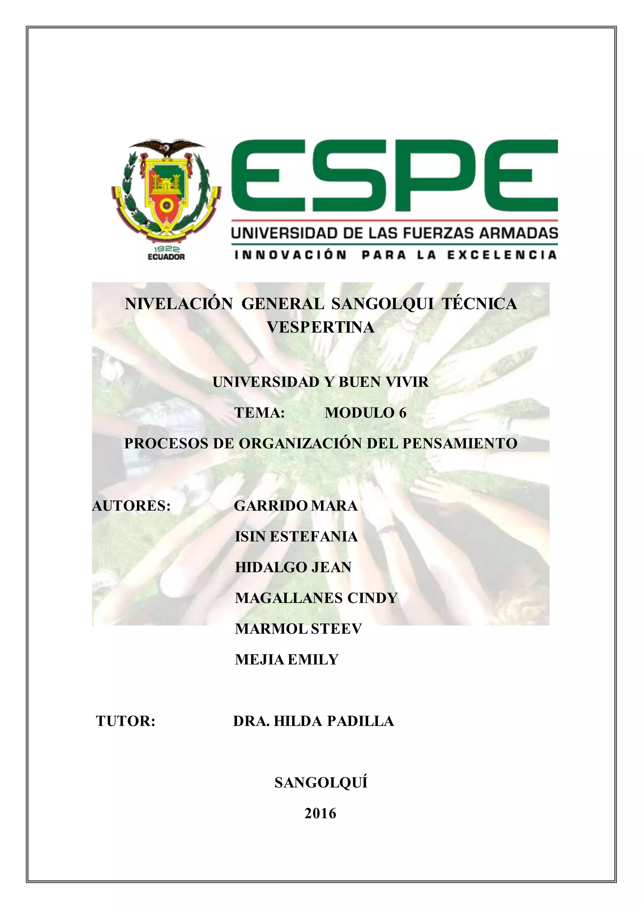 Este documento presenta información sobre procesos de organización del pensamiento. Explica conceptos como experiencia, reflexión, conceptualización, comparación, clasificación y jerarquías. Da ejemplos de cómo aplicar cada uno de estos procesos, como comparar figuras geométricas, clasificar palabras por su tipo gramatical, y establecer una jerarquía del sistema circulatorio. El objetivo es entrenar las habilidades de organizar y sintetizar información.