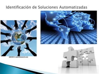 El documento describe los objetivos y procesos de adquisición e implementación de soluciones tecnológicas automatizadas. Los objetivos incluyen asegurar que las soluciones cumplen con los requisitos del usuario mediante análisis, proporcionar plataformas para aplicaciones de negocios a través de evaluación de tecnología, y verificar que las soluciones propuestas sean adecuadas a través de pruebas e instalación. Los procesos cubren identificación de soluciones, adquisición y mantenimiento de software y hardware,