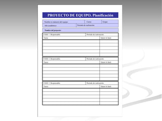 El documento describe el aprendizaje cooperativo y sus beneficios. Explica que trabajar en grupos ayuda a desarrollar competencias básicas y a adaptarse a la sociedad actual. Detalla las características del aprendizaje cooperativo, incluyendo la interdependencia positiva, la responsabilidad individual y las habilidades sociales. También cubre niveles de intervención como cohesionar grupos, enseñar a trabajar en equipo y usar dinámicas cooperativas.