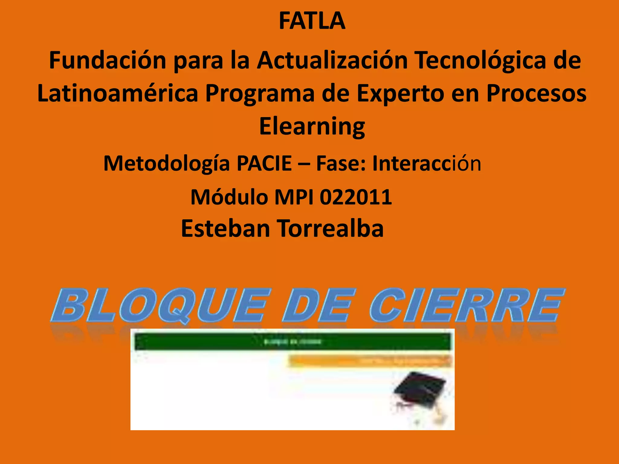 El documento describe la metodología PACIE para entornos virtuales de aprendizaje. PACIE se refiere a Presencia, Alcance, Capacidad, Interacción y E-learning. La estructura de un entorno virtual según PACIE incluye un bloque introductorio, bloques académicos y un bloque de cierre. El bloque de cierre permite la negociación entre tutores y participantes, la retroalimentación del curso a través de encuestas, y da continuidad a procesos educativos inconclusos.