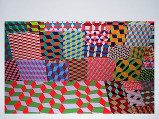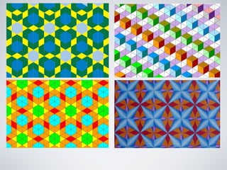 Este documento describe los conceptos fundamentales de módulo, estructura y repetición en el diseño. Explica que un módulo es una unidad de medida que se repite sistemáticamente en el espacio para unificar el diseño. También describe diferentes tipos de repetición como de figura, tamaño, color, etc. Además, introduce las variaciones de repetición y disposiciones direccionales de figuras como lineal, cuadrada, triangular y circular. Por último, define las redes modulares y tramas como estructuras geométricas formadas por tri