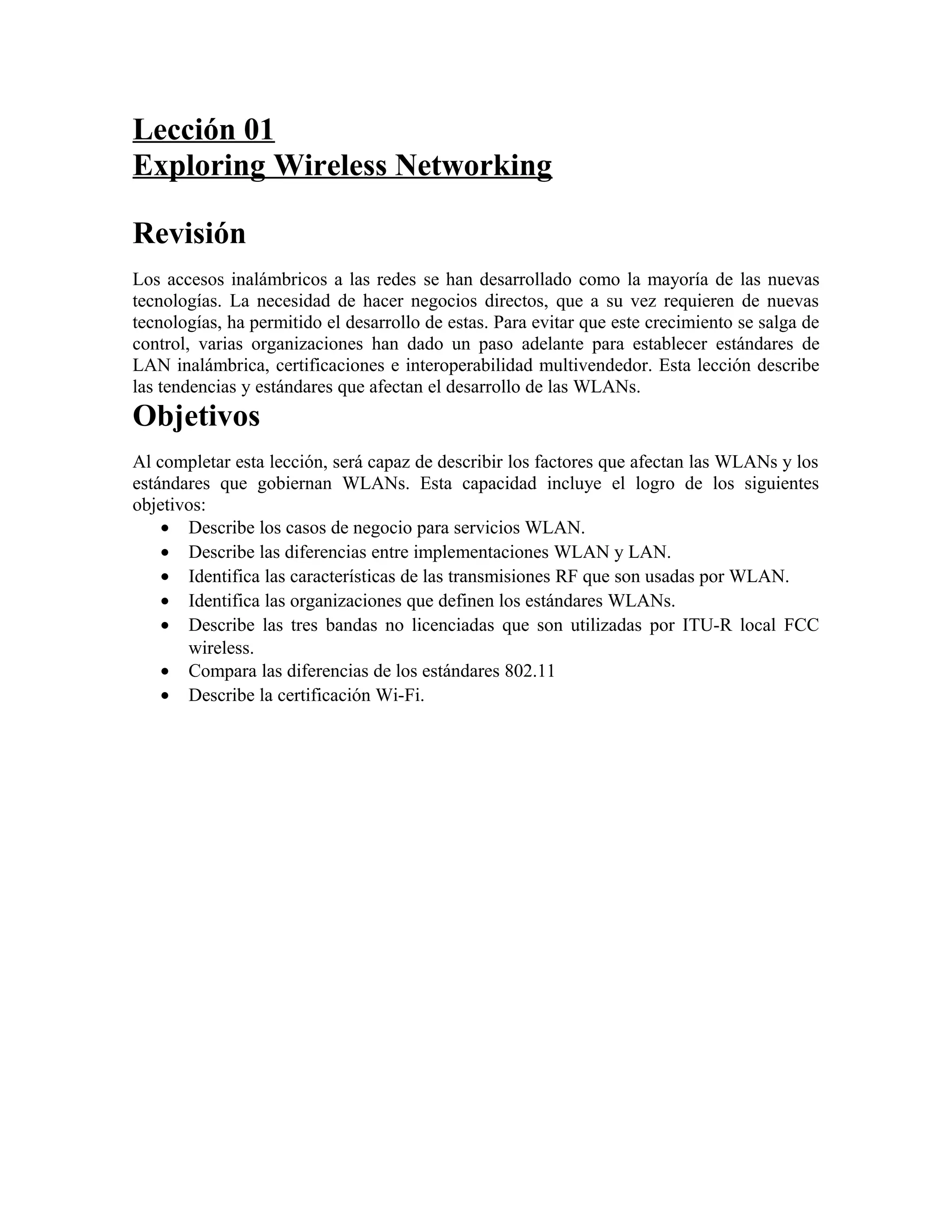 Este documento trata sobre las redes inalámbricas LAN (WLAN). Explica que las WLAN permiten extender el alcance de las LAN más allá de los cables físicos mediante tecnologías inalámbricas. Describe los objetivos del módulo, que incluyen describir el entorno de las WLAN, aspectos de seguridad, factores que afectan las implementaciones y requerimientos de VOIP. También cubre temas como estándares, bandas de frecuencia, organizaciones reguladoras y comparaciones entre estándares 802