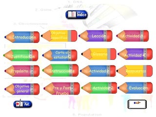 Este documento presenta un módulo instruccional sobre la herencia biológica. Explica conceptos clave como genes, alelos, genotipo y fenotipo. Describe los experimentos de Gregorio Mendel con guisantes y las tres leyes de la herencia que derivó de ellos. Incluye actividades para que los estudiantes apliquen estos conceptos y evalúan su comprensión antes y después del módulo.