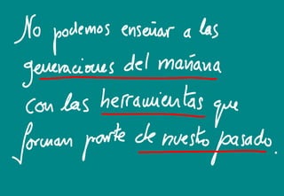 Este documento describe los cambios en los modelos de enseñanza y aprendizaje que están ocurriendo debido a la integración de las TIC en la educación. Se discute el paso de un modelo centrado en el profesor a uno centrado en el estudiante, con un enfoque más activo y basado en proyectos. También se analizan los desafíos y oportunidades que plantean las TIC para la formación del profesorado.