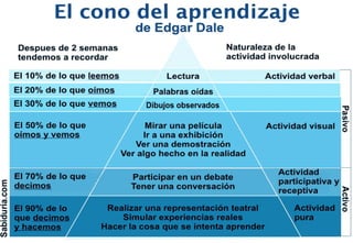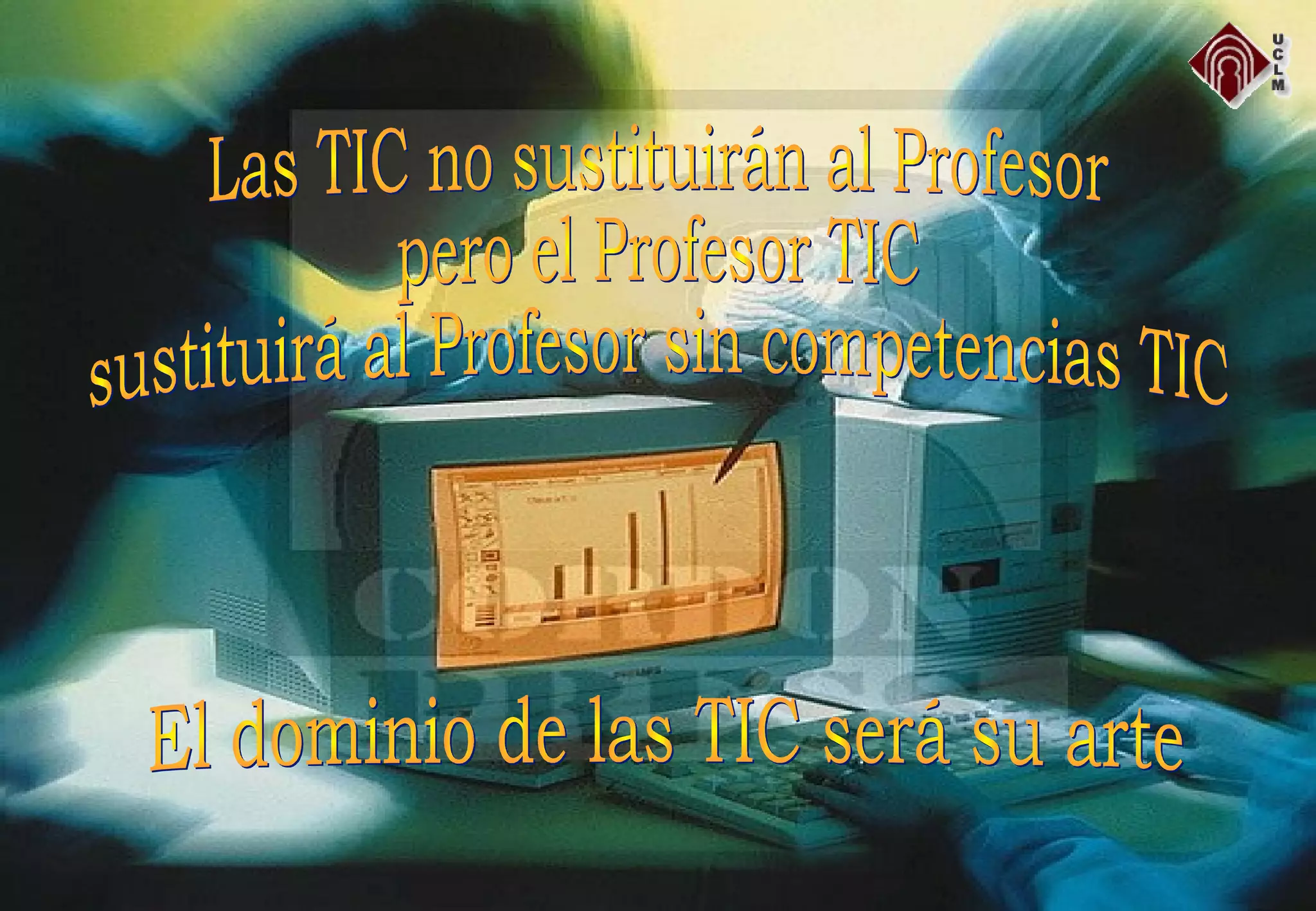 Las TIC están transformando el modelo de enseñanza y aprendizaje hacia uno más centrado en el estudiante, donde éste es protagonista de su propio aprendizaje a través de la actividad. El profesor pasa a ser un guía que facilita el aprendizaje autónomo del estudiante utilizando diversas herramientas TIC. El documento también analiza los retos que plantean las TIC para la formación del profesorado y propone desarrollar en ellos competencias tecnológicas y una mentalidad abierta al cambio.