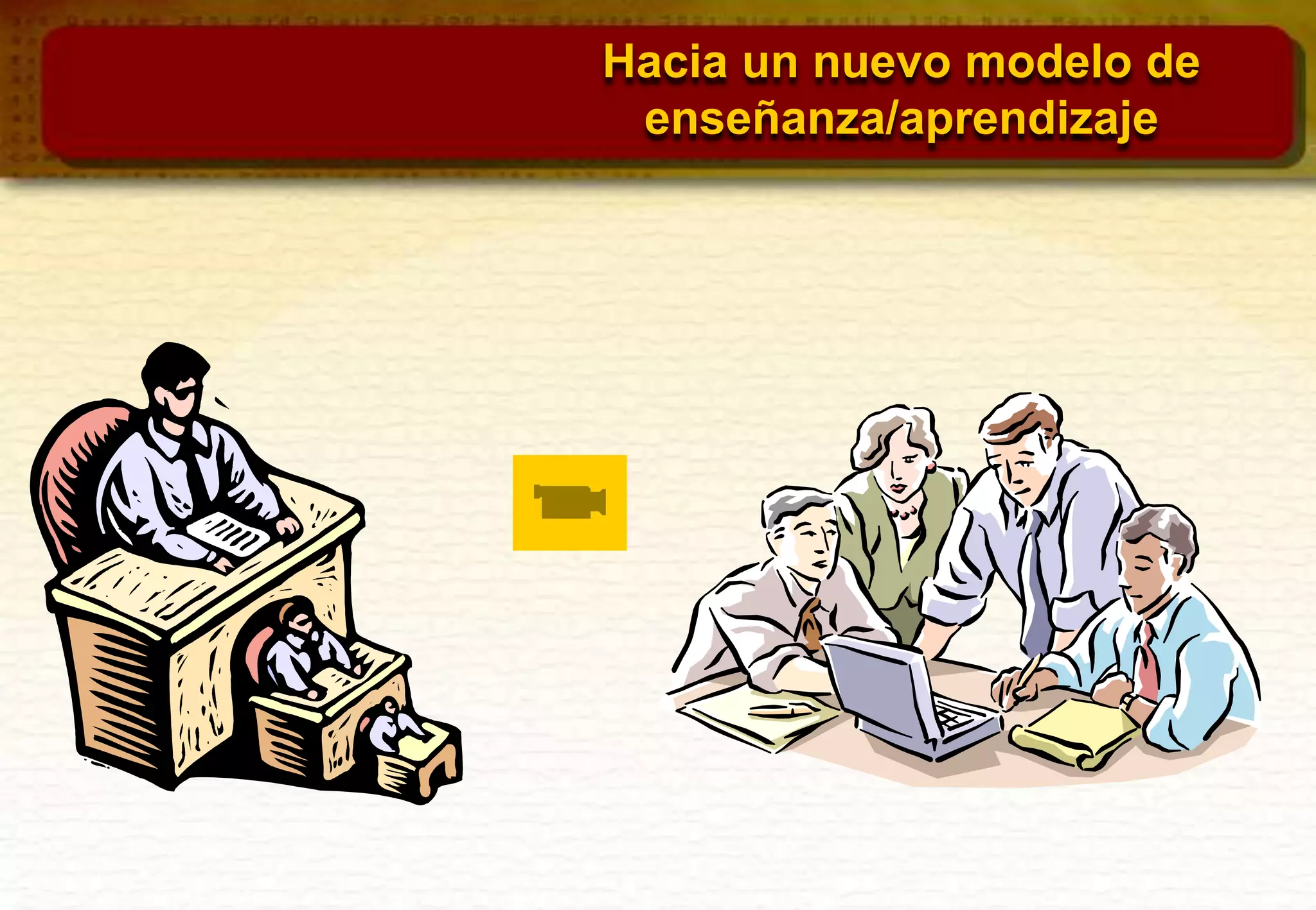 Este documento describe la evolución hacia nuevos modelos de enseñanza y aprendizaje basados en las TIC. Se discuten los cambios del modelo tradicional centrado en el profesor a uno centrado en el estudiante, con un enfoque de aprendizaje a lo largo de la vida. También se analizan los desafíos de la integración de las TIC en la educación y las competencias necesarias para los profesores del futuro.