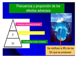 Este documento discute la gestión de riesgos y seguridad del paciente en servicios de salud pública. Explica que es importante hacer las cosas correctamente y de manera segura para mejorar la calidad y continuidad del cuidado al paciente. También analiza los errores médicos, su prevalencia, y la importancia de implementar sistemas para reportar eventos adversos para prevenirlos en el futuro.