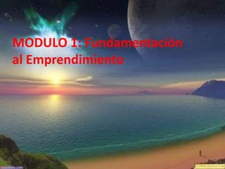 1. El documento presenta información sobre un módulo de fundamentación al emprendimiento, incluyendo objetivos, temas y resultados.