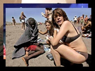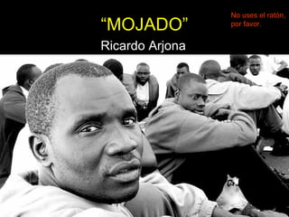 El poema describe la historia de un inmigrante indocumentado llamado "el mojado" que deja su país empacando pocas pertenencias y despidiéndose con una sonrisa falsa. El mojado cruza la frontera ilegalmente en busca de una vida mejor, pero se siente como un fugitivo perseguido por no tener papeles. Añora a su familia y su hogar mientras llora por la nostalgia y la ansiedad de estar lejos. El poema pregunta por qué el mojado necesita visas si la luna puede moverse libre