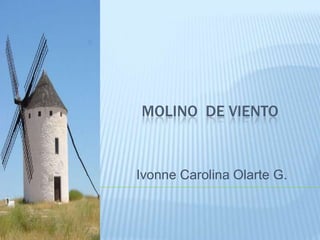 Este documento describe la historia y función de los molinos de viento. Los primeros molinos se originaron en el Medio Oriente y utilizaban la fuerza del viento para hacer girar una rueda con paletas conectada a un eje vertical. Los molinos de viento modernos generan fuerza aerodinámica para hacer girar un eje y proveer energía mecánica, y usan sistemas de control para orientarse hacia el viento. Actualmente, la energía eólica se usa principalmente para generar electricidad a través de aerogeneradores, lo