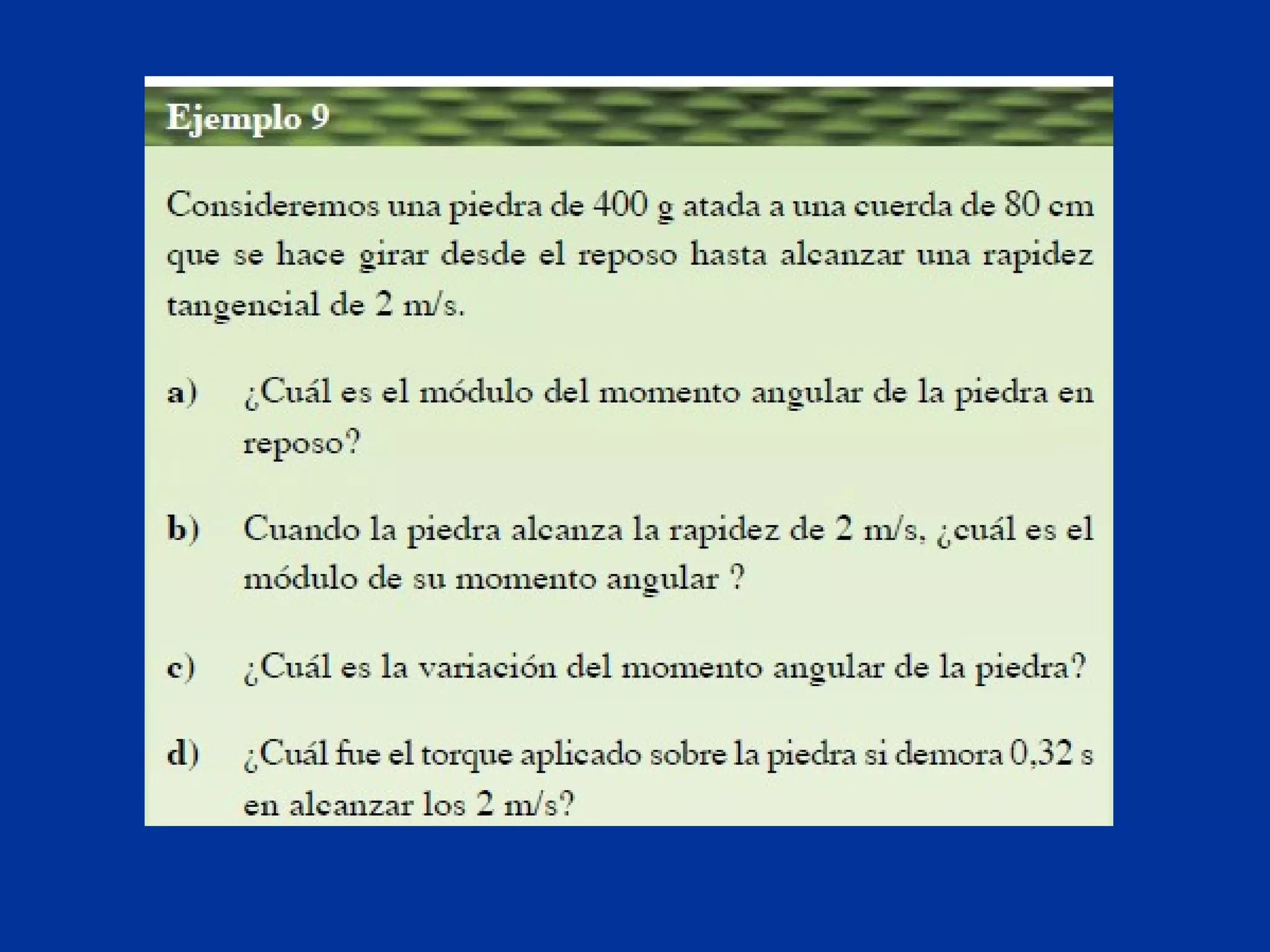 El documento define el momento angular como una medida de la inercia de rotación de un objeto que lo mantiene girando hasta que algo cambie su velocidad. Explica que el momento de inercia depende de la masa del objeto y de su distancia al eje de rotación, y que es mayor cuanto más lejos estén los pesos del cuerpo. También define el torque como la fuerza perpendicular al eje de rotación que provoca el movimiento de rotación de un objeto.