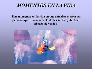 El documento contiene reflexiones sobre la vida y las relaciones humanas. Habla sobre extrañar a personas cercanas, no juzgar por las apariencias, buscar a alguien que te haga sonreír, soñar con lo que quieras y aprovechar cada oportunidad en la vida. También menciona la importancia de la felicidad, sacar lo mejor de cada situación, dejar atrás el pasado para avanzar, y vivir de tal forma que cuando se termine la vida uno pueda sonreír.