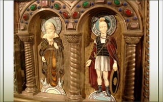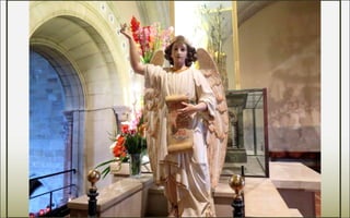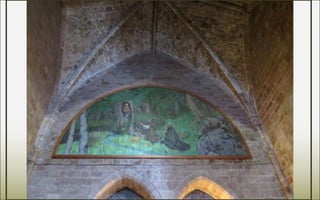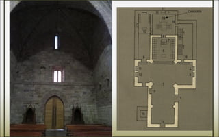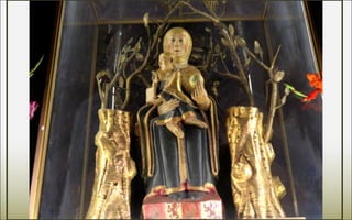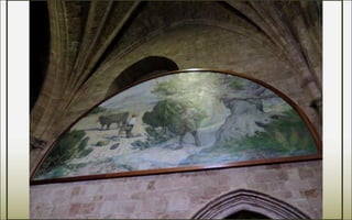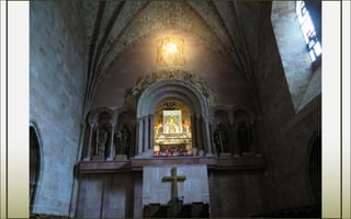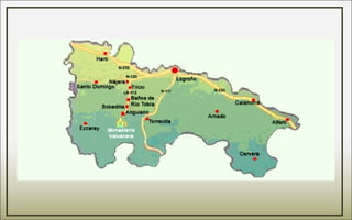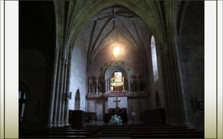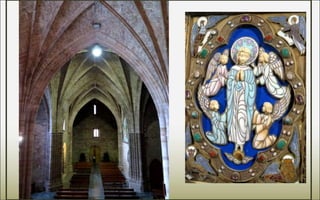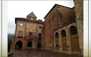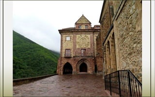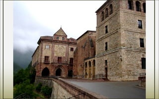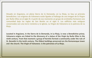 El documento detalla la historia del priorato benedictino de Valvanera, ubicado en Anguiano, La Rioja, que se originó en el siglo IX con el hallazgo de una imagen de la Virgen por Nuño Oñez. Describe la evolución arquitectónica del lugar, desde su primera ermita de estilo visigótico hasta la iglesia actual de estilo gótico tardío, así como la importancia cultural y religiosa de la Virgen de Valvanera como patrona de La Rioja. Además, menciona elementos artísticos presentes en la iglesia, como mosaicos y altarpieces relacionados con la historia de la Virgen.