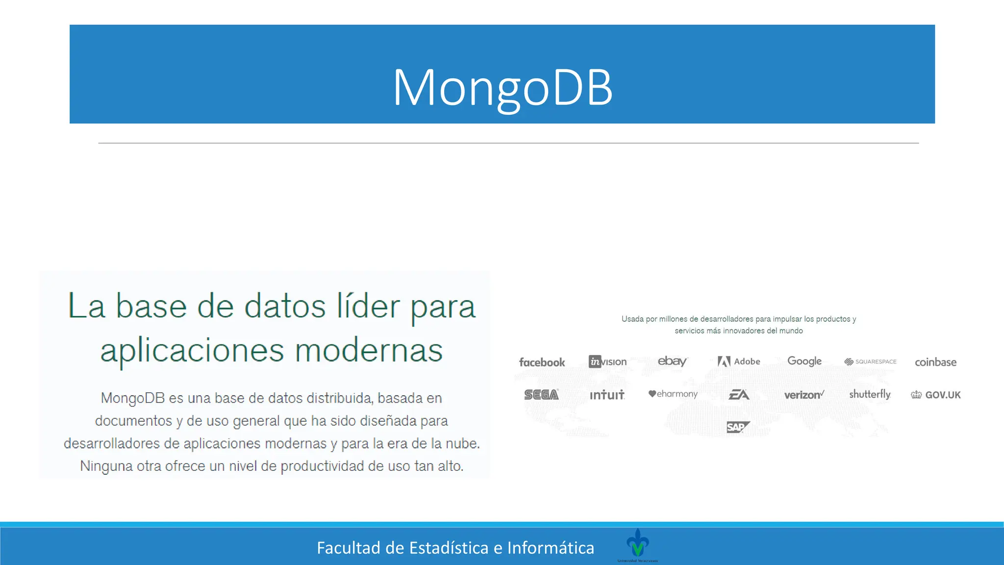 MongoDB es un sistema de base de datos NoSQL orientado a documentos. Almacena datos en formato BSON de manera similar a JSON pero más eficiente. Los datos se almacenan en colecciones que contienen documentos con esquemas dinámicos, a diferencia de las tablas de las bases de datos relacionales. MongoDB permite realizar operaciones como insertar, buscar, actualizar y eliminar documentos de manera flexible.