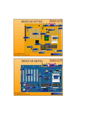 El documento define y describe varios componentes clave de una computadora, incluyendo la batería, BIOS, chipset, conectores IDE, ranuras PCI y AMR, teclado, zócalos mPGA478 y DIMM. Explica que la batería suministra energía para mantener la configuración del sistema, el BIOS carga el sistema operativo, el chipset conecta otros componentes, y los conectores IDE se usan para discos duros y unidades ópticas.