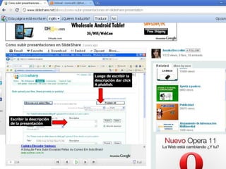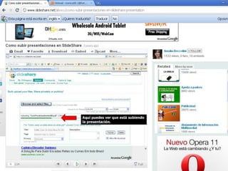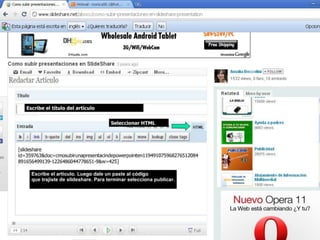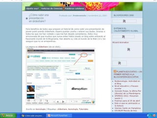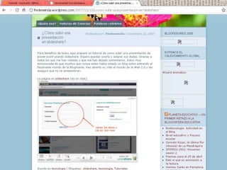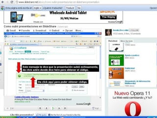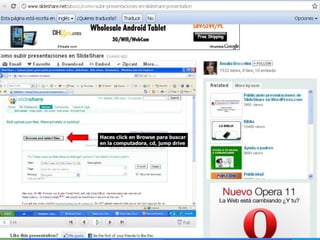 SlideShare es una aplicación web que permite almacenar presentaciones de diapositivas y compartirlas en formato FLASH para que puedan ser vistas fácilmente sin necesidad de descargarlas o llevar la presentación original.