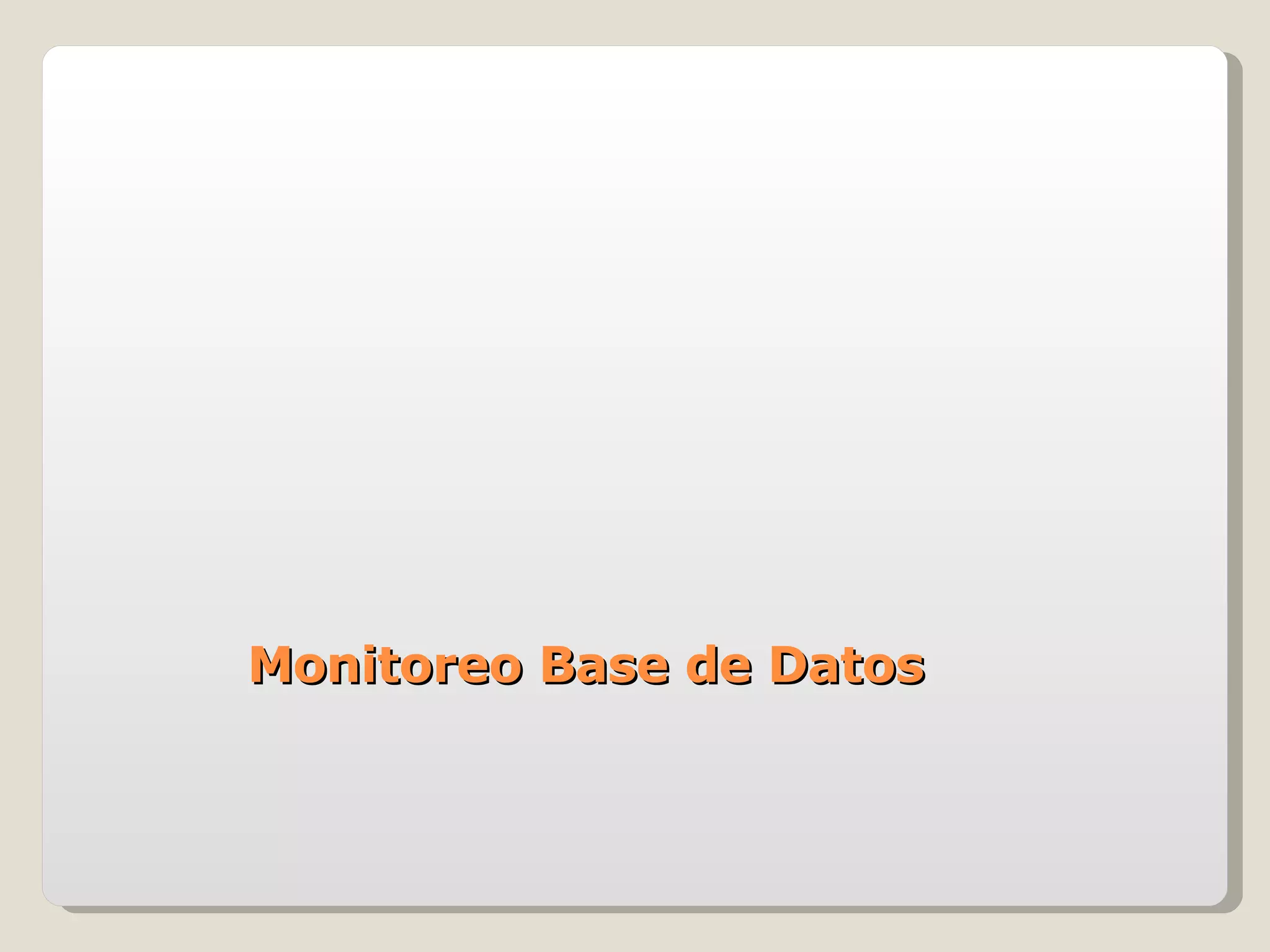 Este documento describe las funciones de monitoreo de una consola de administración centralizada de bases de datos, incluyendo el monitoreo del espacio utilizado por las bases de datos y tablas, el rendimiento, los trabajos programados, los backups y restores realizados, los archivos de datos y registros, los procesos activos, las transacciones costosas, los bloqueos, la memoria utilizada y el análisis y fragmentación de índices.