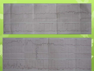 El monitoreo fetal electrónico permite monitorear la frecuencia cardíaca fetal, la actividad uterina y los movimientos fetales de forma continua. Se utiliza para evaluar el bienestar fetal, detectar sufrimiento fetal temprano y predecir la forma de terminar el parto. Los parámetros evaluados incluyen la frecuencia cardíaca fetal basal, las aceleraciones, desaceleraciones y variabilidad. Se realizan pruebas basales y de estrés para evaluar la reserva de oxígeno fetal.