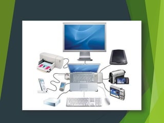 El documento describe los diferentes tipos de puertos y cables que se usan comúnmente para conectar dispositivos periféricos a una computadora, incluyendo puertos seriales, USB, FireWire, paralelos, SCSI, de red, PS/2, de audio y de video. Además, ofrece información sobre el mantenimiento y limpieza de puertos, así como causas comunes y herramientas para reparar puertos dañados.