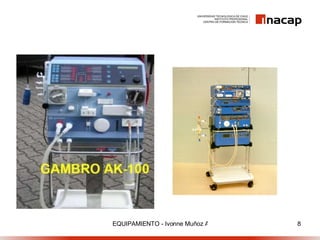 El documento describe los componentes principales de un monitor de hemodiálisis. Explica que un monitor controla la circulación de sangre a través de un circuito extracorpóreo y la preparación de la solución de líquido de diálisis. Describe los elementos del circuito sanguíneo como bombas, medidores de presión y detectores de aire, y los componentes del circuito hidráulico como calentadores, bombas y desgasificadores que preparan el líquido de diálisis.