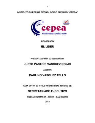 La monografía aborda la temática del liderazgo, definiendo conceptos, estilos y características del líder necesario para el desarrollo social y organizacional. Se estructura en dos capítulos, donde el primero explora el liderazgo y su influencia en los grupos, y el segundo se centra en las cualidades y funciones del líder. La importancia del liderazgo en la dirección y ejecución de actividades se destaca como un factor crucial para el éxito en la consecución de objetivos en cualquier organización.