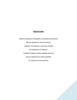 El documento discute la relación entre la economía y el medio ambiente. Explica que la economía afecta al medio ambiente a través de la producción, y que se han desarrollado políticas ambientales para abordar estos impactos. El documento también resume diferentes enfoques teóricos sobre este tema, como los instrumentos de política ambiental y las estrategias para lograr un desarrollo sostenible.