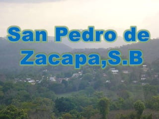 El documento proporciona información sobre la historia, geografía, economía, cultura y atracciones turísticas de San Pedro de Zacapa, Honduras. El municipio fue fundado en 1889 y celebra su aniversario el 29 de junio con una feria patronal. La población actual es de aproximadamente 8,300 habitantes que se dedican principalmente a la agricultura, ganadería y artesanía. El municipio cuenta con varios ríos, cascadas y aguas termales que atraen turistas.