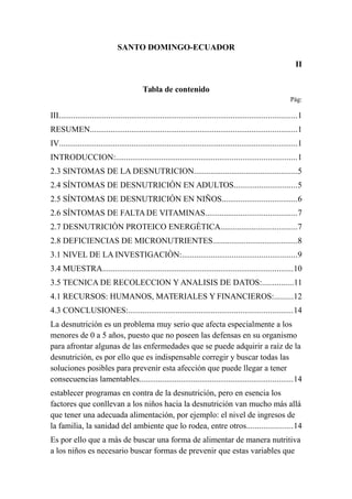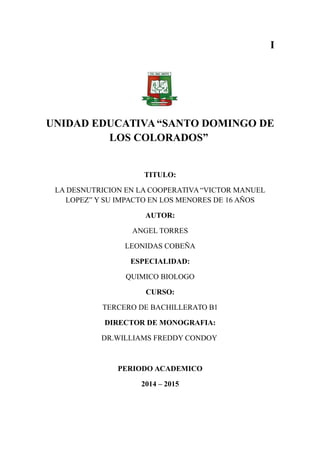 La desnutrición es un problema serio que afecta a los menores de 16 años en la Cooperativa "Víctor Manuel López" debido a que carecen de las defensas suficientes para enfrentar enfermedades como resultado de una alimentación inadecuada. Los factores que conllevan a la desnutrición en los niños incluyen la falta de ingresos económicos en las familias y las malas condiciones sanitarias del entorno, más allá de solo la alimentación. Es necesario buscar soluciones a estos diversos factores para pre