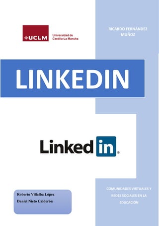 Este documento resume un artículo sobre la red social profesional LinkedIn y su uso en la educación. Explica brevemente el origen y evolución de LinkedIn, describiendo sus principales funciones como la creación de perfiles, grupos de discusión y búsqueda de empleo. Además, analiza las ventajas e inconvenientes de usar esta red y presenta los resultados de una encuesta realizada a estudiantes sobre su conocimiento y uso de LinkedIn.