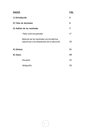 La mayoría de los encuestados opinan que no es favorable que cada gobierno que entre cambie la ley educativa, que el número de alumnos por aula influye en la calidad de la enseñanza, y que a mayor presupuesto del Estado hay mejor educación. Otras opiniones incluyen que la educación depende de los valores enseñados en el colegio y de los conocimientos adquiridos, pero no solo de eso.