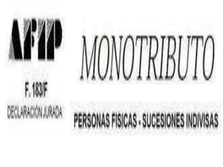 El régimen de monotributo permite que pequeños contribuyentes concentren en una cuota única mensual el pago del impuesto a las ganancias, IVA, jubilación y obra social. Los beneficios son la integración al sistema tributario y contar con obra social y jubilación. Para ser monotributista se debe tener ingresos brutos anuales menores a $200.000 por servicios o $300.000 por ventas, y cumplir ciertos requisitos sobre superficie, energía consumida y alquileres.