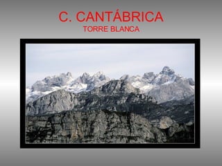Este documento enumera las principales montañas y cordilleras de España, incluyendo la Cordillera Cantábrica, el Sistema Central, la Sierra Nevada, los Pirineos y las montañas de las Islas Canarias y Baleares. Describe las características geográficas de más de 20 cadenas montañosas españolas, resaltando picos emblemáticos como el Mulhacén, el Teide y el Monte Perdido.