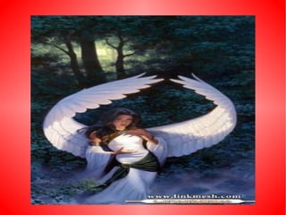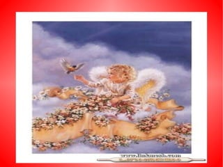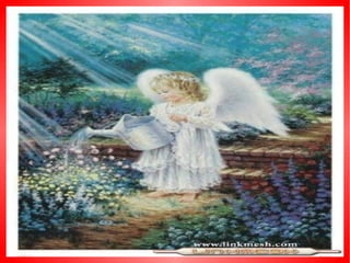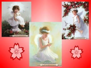 El documento describe diferentes escenas relacionadas con ángeles, incluyendo caminar por un arroyo, jugar con un pato, mirar un árbol de Navidad y al sol, y tener un ángel dentro.