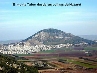 El Monte Tabor se encuentra en la región de Galilea en Israel, a unos 10 km de Nazaret y del lago de Tiberiades. Aunque su altura es de sólo 588 metros, sobresale de las planicies circundantes. En la cima del monte se construyó la basílica de la Transfiguración.