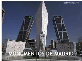 La Plaza Mayor, el Palacio Real, la Puerta de Alcalá y la Fuente de Neptuno son cuatro importantes monumentos históricos de la ciudad de Madrid.