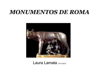 Este documento resume los principales monumentos de la antigua Roma, incluyendo el Circo Máximo, el Foro Romano, el Panteón, el Palatino, el Anfiteatro Flavio (conocido como el Coliseo), el Mausoleo de Adriano y las Termas de Caracalla. Los monumentos se construyeron entre los siglos VI a.C. y II d.C. y servían propósitos lúdicos, religiosos, políticos y privados para los ciudadanos romanos.