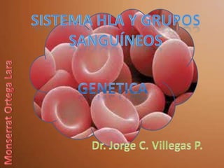 El documento resume las características principales del complejo mayor de histocompatibilidad (MHC) y del sistema sanguíneo ABO. Explica que el MHC se compone de múltiples genes en el cromosoma 6 que clasifican la sangre en cuatro tipos (O, A, B, AB) según la presencia de antígenos A y B en los glóbulos rojos y anticuerpos en el plasma. También describe la herencia de estos sistemas y la frecuencia de los distintos tipos sanguíneos.
