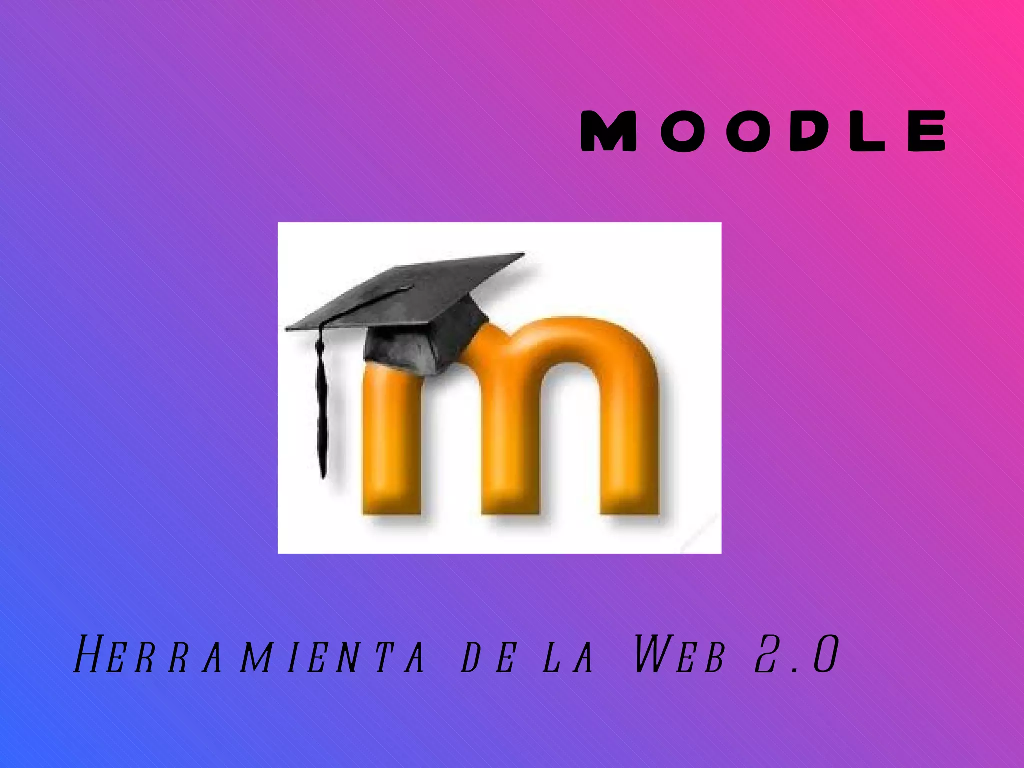 Moodle es una plataforma de gestión de aprendizaje en línea que permite a los educadores crear comunidades de aprendizaje. Los usuarios deben iniciar sesión con una cuenta para acceder a los cursos. Moodle ofrece varios módulos como tareas, foros, cuestionarios y wikis para que los estudiantes interactúen y colaboren. La plataforma promueve un aprendizaje social y constructivo a través de estas herramientas.