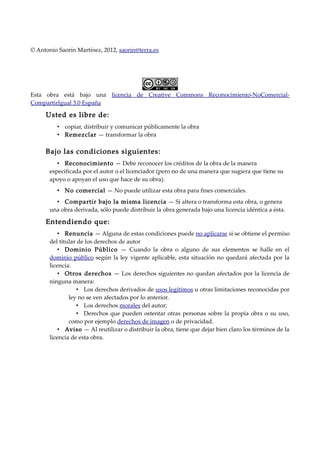 El 'Manual del Profesor' de Moodle 2.0, escrito por Antonio Saorín Martínez, presenta las novedades y mejoras de la plataforma LMS Moodle en su versión 2.0, que incluye una mayor modularidad, mejoras en la apariencia, navegación y control sobre el aprendizaje del alumnado. La obra está bajo una licencia Creative Commons que permite su copiado y distribución bajo ciertas condiciones. Este manual es un recurso útil tanto para nuevos usuarios como para aquellos familiarizados con versiones anteriores.