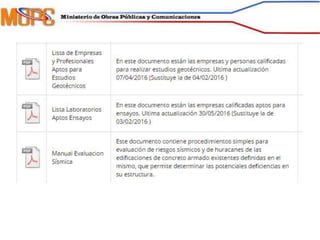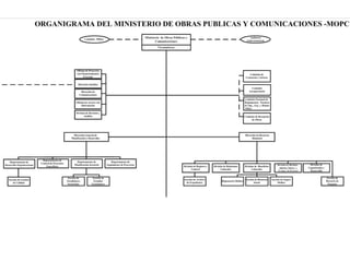 Este documento describe las funciones y dependencias del Ministerio de Obras Públicas y Comunicaciones de la República Dominicana (MOPC). El MOPC se encarga de planificar, construir y mantener la infraestructura de transporte y comunicaciones del país, así como establecer normas y regular la calidad en la construcción. El documento explica las diversas direcciones y oficinas del MOPC involucradas en la tramitación y aprobación de planos y permisos de construcción.