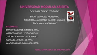 Este documento presenta información sobre la ética y la moral a través de varias secciones. Define la ética como la disciplina filosófica que estudia el "deber ser" de la conducta humana y señala que su objetivo es normar las interacciones sociales para indicar lo que es bueno o malo. También explica las diferencias entre la ética y la moral, y describe varios modelos éticos como la deontología, el utilitarismo y los derechos morales.